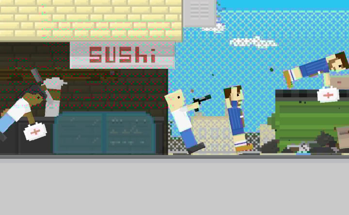 Getaway Shootout is made by New Eich Games, the same developer who made other challenging 2 players physics-based games: Rooftop Snipers, Tube Jumpers, and Ping Pong Chaos.Features